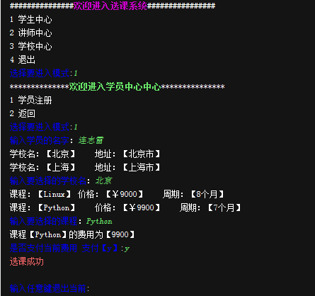 if if_pay == "y": #上面全部匹配成功,选课成功