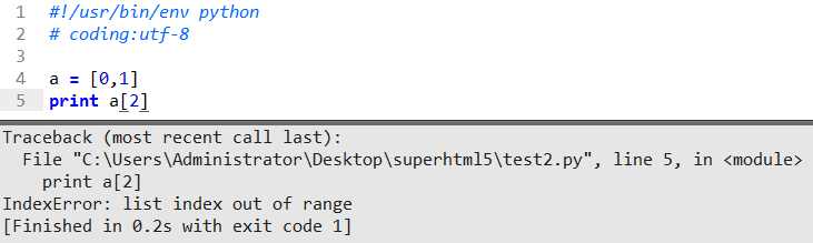 列表a只有2个参数,下标是0,1(不懂去看列表基础),而我要打印下标2位置的值这时候就超过它的标准不在范围内