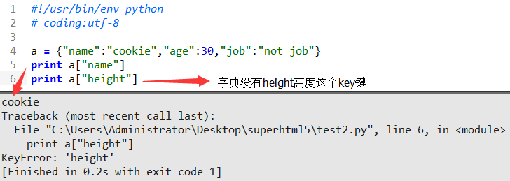 KeyError 键值错误 一般出现在字典中原因是:字典a中没有height这个键值,name已经打印出来因为a里面已经存在