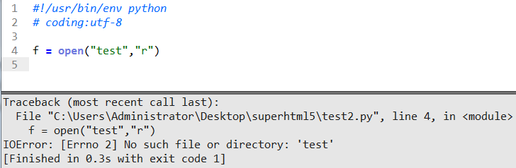 IOError 输入输出错误 原因:No such file or directory : 'test' 没有在目录中找到叫test文件