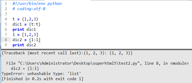 TypeError 类型错误:不知道的哈希类型 list列表 (后面为个人理解) 但是元组却可以放进去有点费解,字典的key一般是单元素或唯一标识,