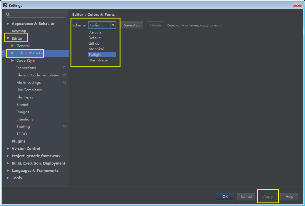 要配置编辑界面皮肤,可按下面进行配置。一般字体按默认项会比较小,也可以按下面的配置修改大一些。