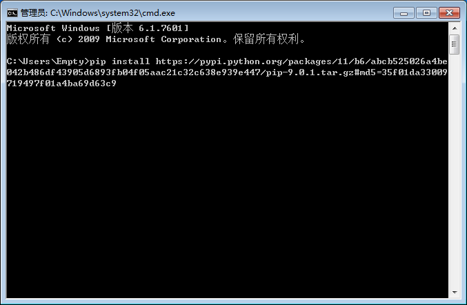 pip install https://pypi.python.org/packages/11/b6/abcb525026a4be042b486df43905d6893fb04f05aac21c32c638e939e447/pip-9.0.1.tar.gz#md5=35f01da33009719497f01a4ba69d63c9