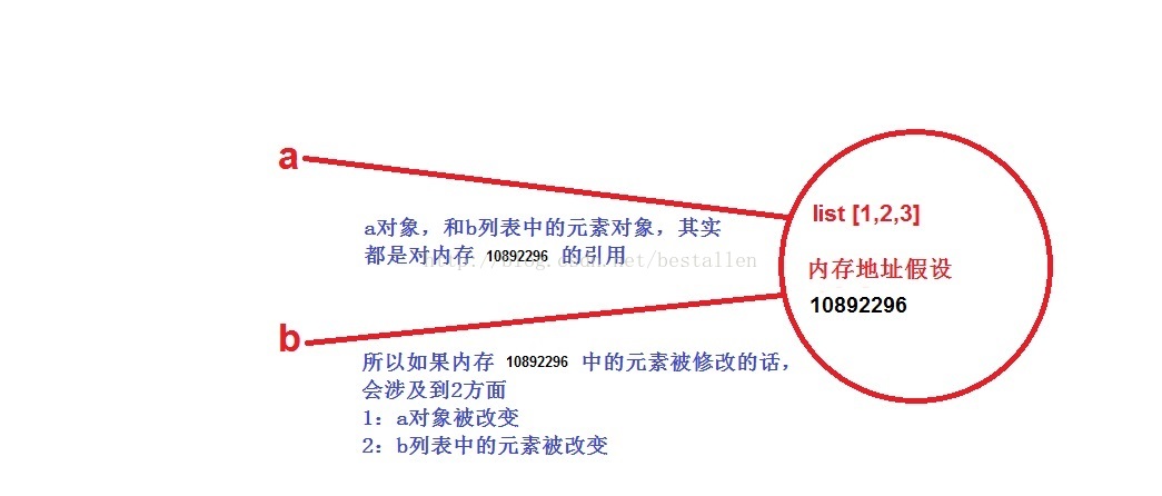 我们可以看到,a对象的id(内存地址)为10892296,虽然b把a包裹进了新的list,但是,这个元素引用的,还是相同地址的对象,可以用下图来解释