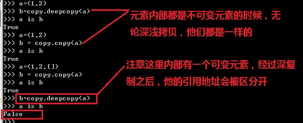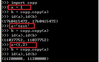 需要说明的是,虽然浅复制之后,列表内不可变元素的引用地址还是相同的,但是,正因为他们是不可变元素,所以,其中任意不可变元素被改变之后,引用地址都会是新的,而不会影响到原来的引用地址。