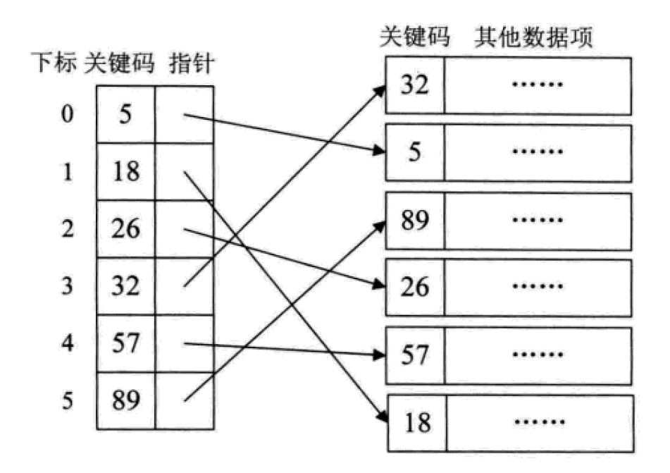 一个索引由若干个索引项构成,每个索引项至少包含关键字和其对应的记录在存储器中的位置等信息。