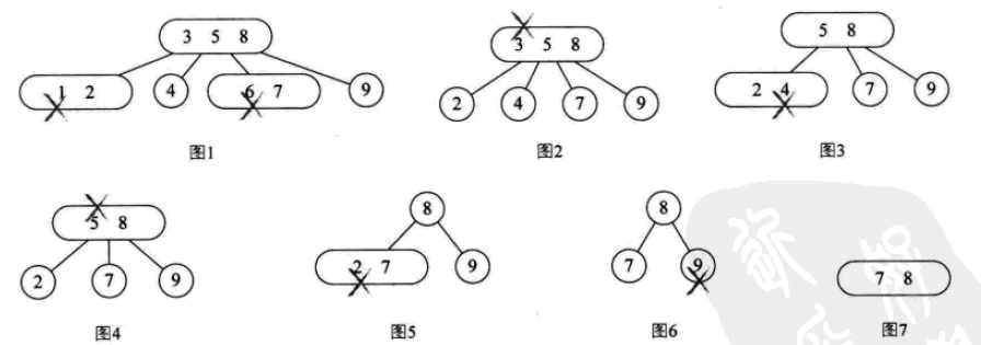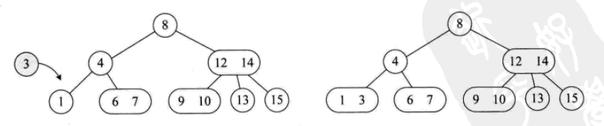 一个3结点包含两个元素和三个孩子(或者没有孩子,不能只有一个或两个孩子)。