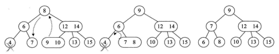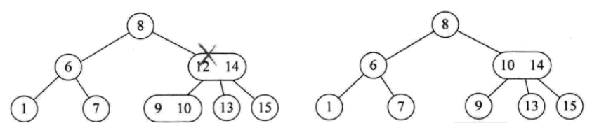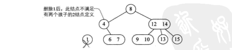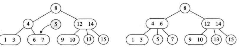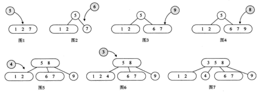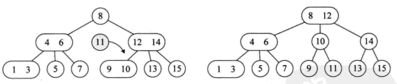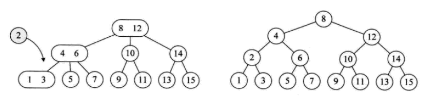 一个2结点包含一个元素和两个孩子(或者没有孩子,不能只有一个孩子)。与二叉排序树类似,其左子树包含的元素都小于该元素,右子树包含的元素都大于该元素。