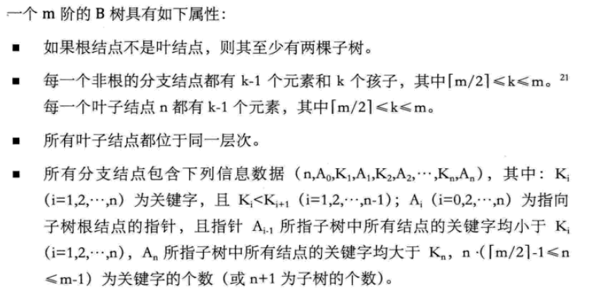 B树是一种平衡的多路查找树。节点最大的孩子数目称为B树的阶(order)。2-3树是3阶B树,2-3-4是4阶B树。