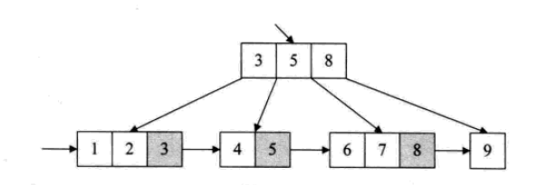 B+树中,出现在分支节点中的元素会被当做他们在该分支节点位置的中序后继者(叶子节点)中再次列出。另外,每一个叶子节点都会保存一个指向后一叶子节点的指针。