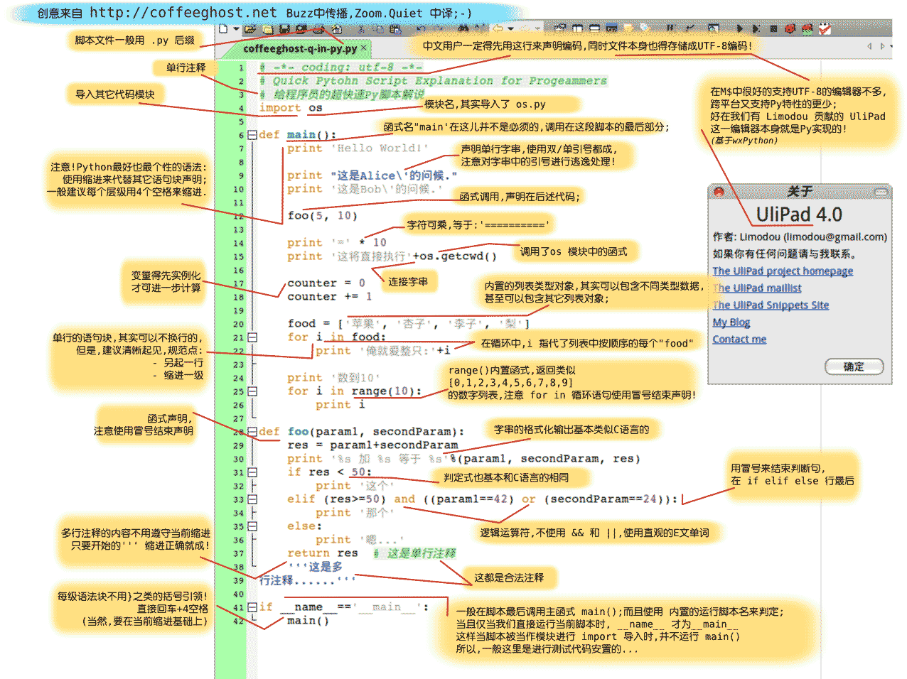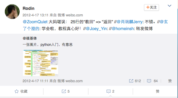 “这个图太棒了,有编程基础的人一下子就了解 Python 的用法了。真正的 30 分钟上手。”Buzz by http://www.google.com/profiles/lanphaday#buzz 赖勇浩