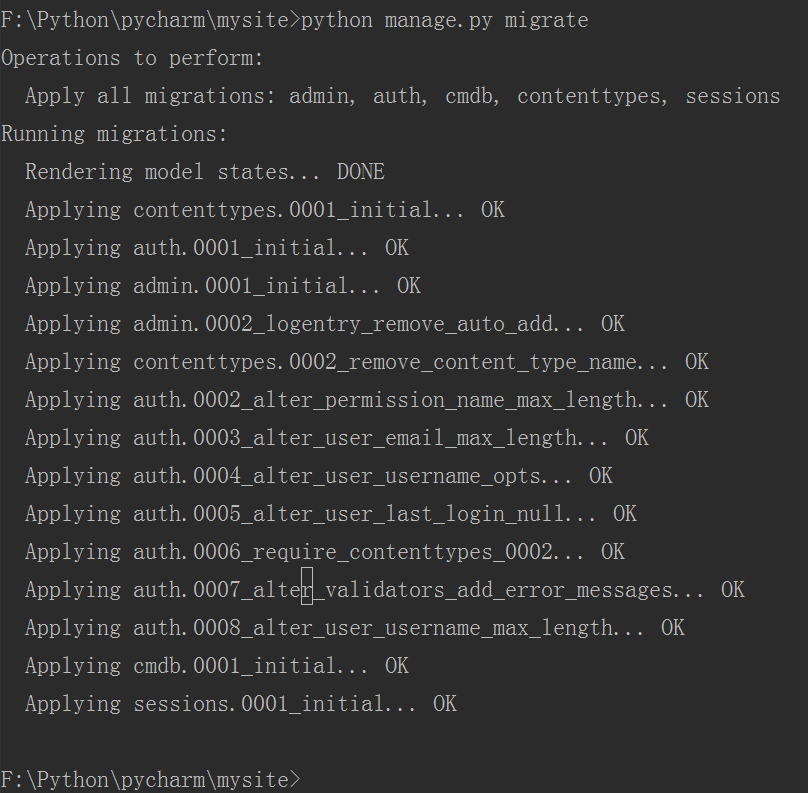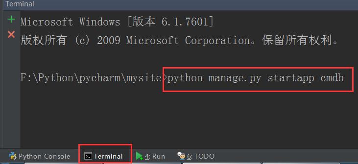 接下来要在pycharm的teminal中通过命令创建数据库的表了。有2条命令,分别是: