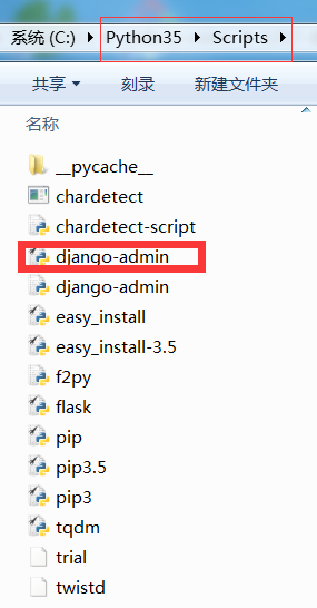 成功安装Django后,在下图中的路径可找到django-admin.exe文件,将它加入操作系统环境变量中。这样在以后的调用会比较方便。