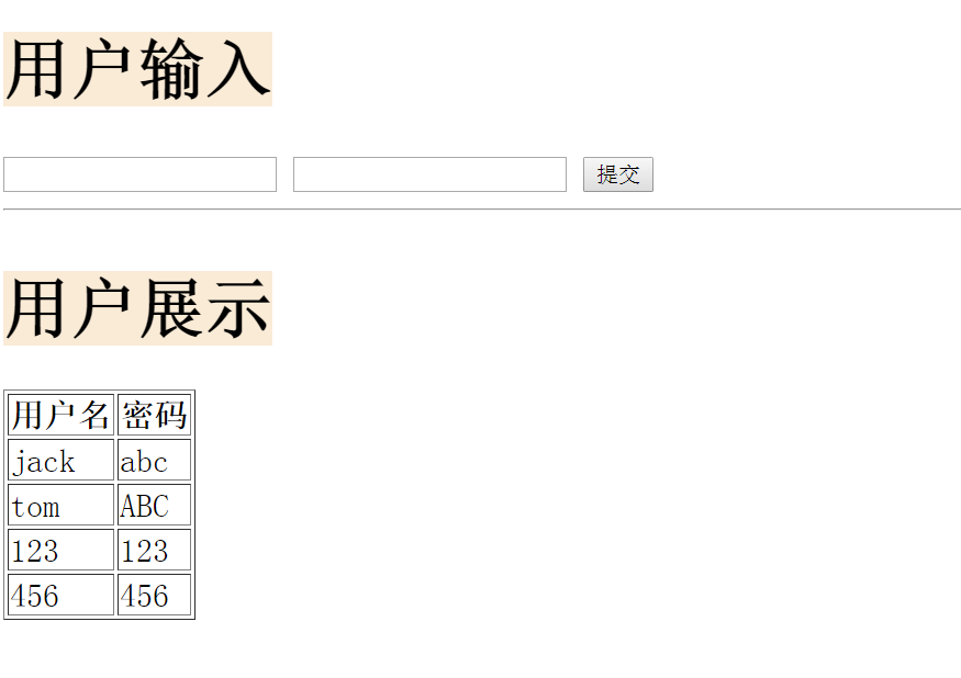 可以看到,我们获得了用户实时输入的数据,并将它实时展示在了用户页面上,这是个不错的交互过程。