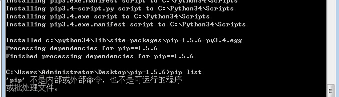 安装好之后,我们直接在命令行输入pip,同样会显示‘pip'不是内部命令,也不是可运行的程序。因为我们还没有添加环境变量。
