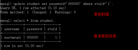 >>> 插入数据: esatmount 123456 1 yangxiuzhang 123456 2 xiaoy 123456 3 yxz 111111 10 >>>