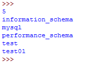conn=MySQLdb.connect(host='localhost',user='root',passwd='123456',port=3306, db='test01')