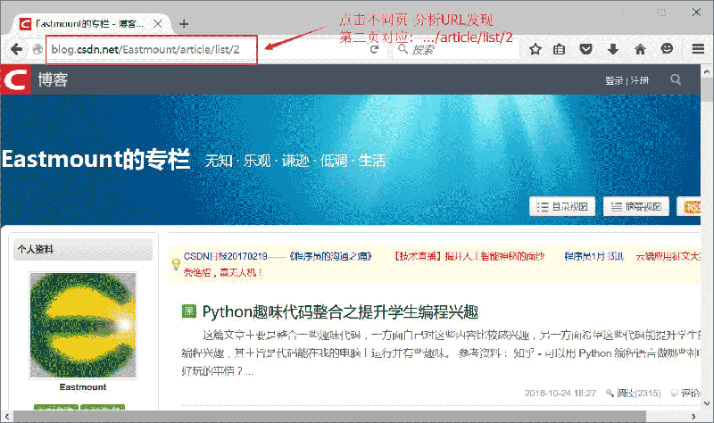 爬取的地址为:http://blog.csdn.net/Eastmount