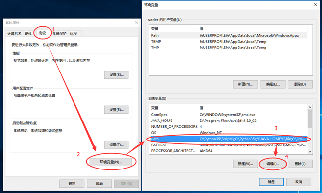 此处需要将两个目录添加到path环境变量中:
