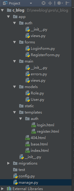 然后登陆注册登出页集中到权限蓝本(auth),权限蓝本初始化代码如下: