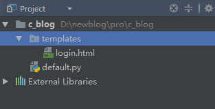 好,首先在PyCharm的项目根目录创建templates文件夹,然后在文件夹内创建login.html文件,当然目录结构如下: