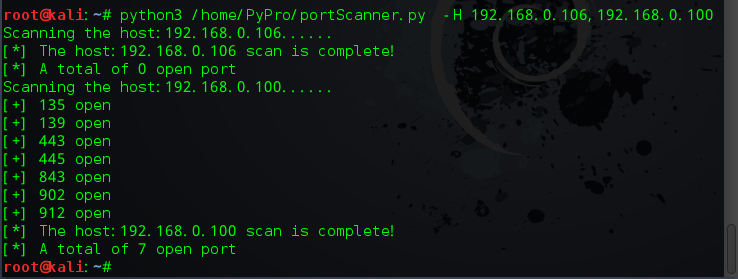 print('[*] The host:%s scan is complete!' % (host))