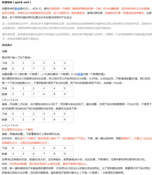 快速排序示例:
