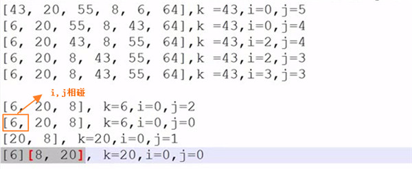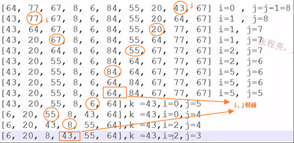 # 找到了左边比k大的值 ,把array[high](此时应该刚存成了key) 跟这个比key大的array[low]进行调换