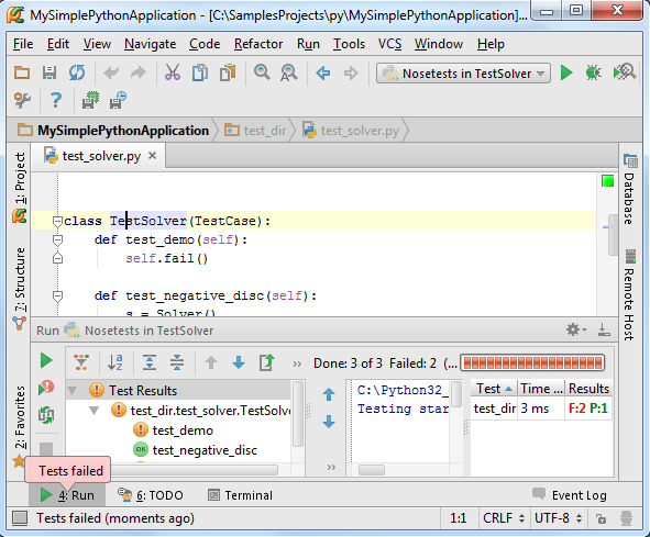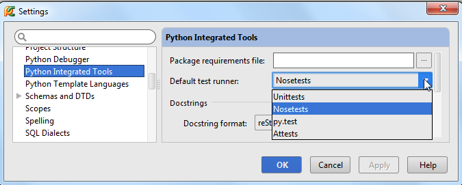 在这里我们选择Nosetests,保存并关闭对话框。