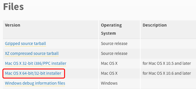 1. 进入Python官网,点击Latest右侧的链接进入,找到底部的Files,下载适合自己的安装文件,我装的是Python3.6.0。