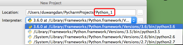 1. 打开安装好的PyCharm,新建项目,第一行路径后面可以修改名称,第二行可以勾选你想使用的Python版本,然后create。