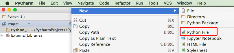 2. 新建完后单击右键(我将自己的Mac设置了和Windows类似的操作习惯),新建一个Python文件后就可以编译了。
