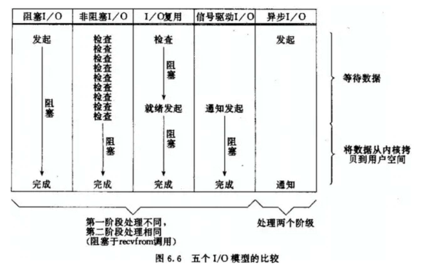 当用户进程调用了select,那么整个进程会被block,而同时,kernel会“监视”所有select负责的socket,当任何一个socket中的数据准备好了,select就会返回。这个时候用户进程再调用read操作,将数据从kernel拷贝到用户进程。