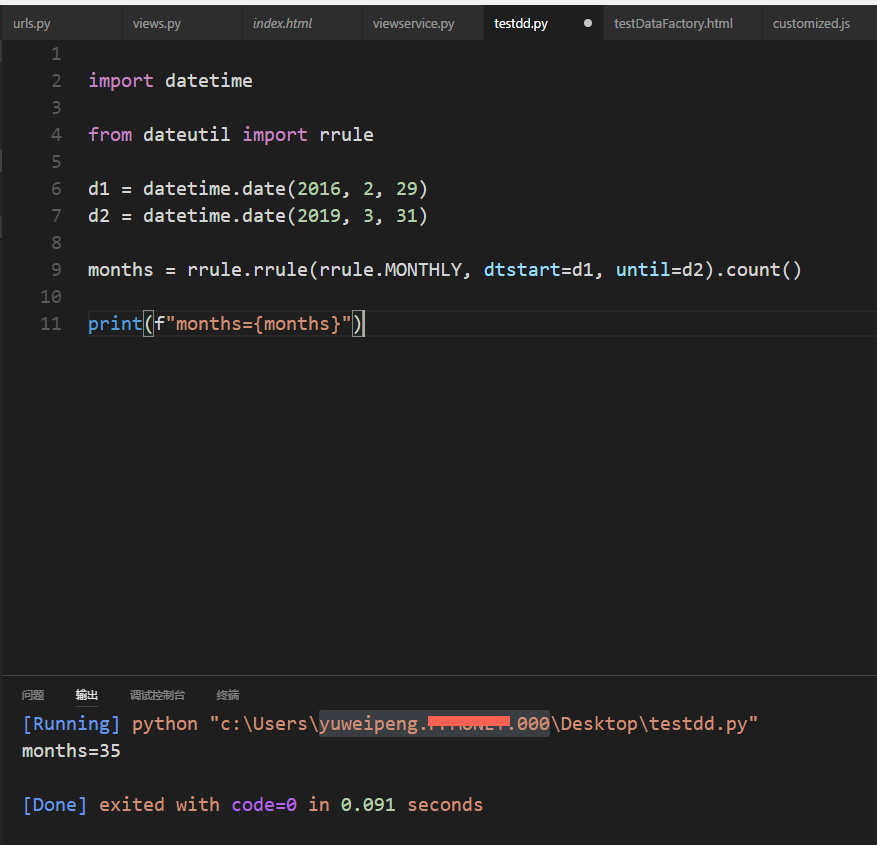 dateutil.rrule这个例子是我好不容易找到的,请看我的测试结果: