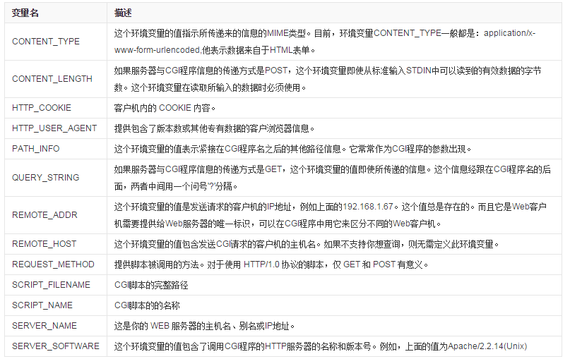 所有的CGI程序都接收以下的环境变量,这些变量在CGI程序中发挥了重要的作用: