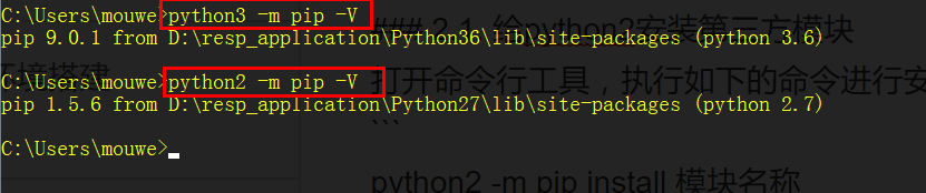 打开命令行工具,执行如下的命令进行安装python2需要的模块
