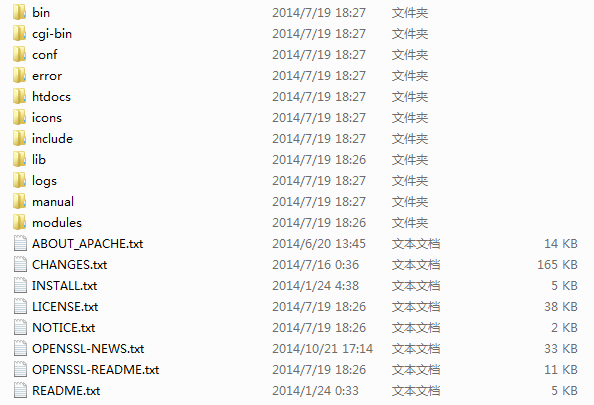 下载安装完成,apahche的目录结构如下: