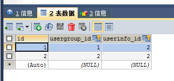 Django model会自动创建第3张关系表,用于对应UserInfo_id 和UserGroup_id