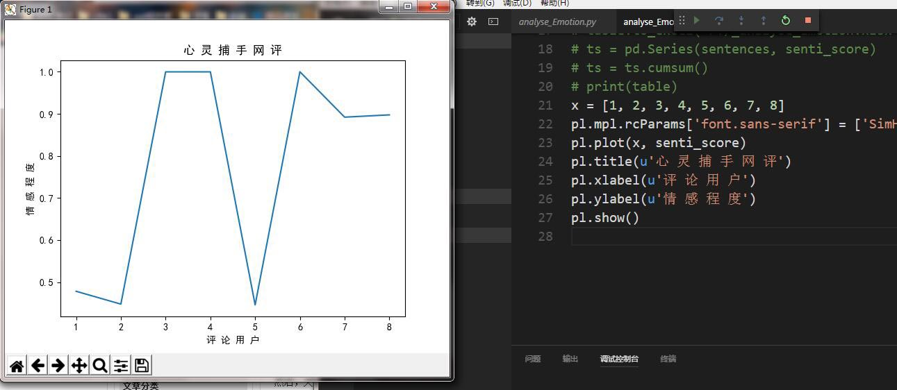 在编译运行之前,先得安装snownlp包,后续还有pylab,pandas模块: