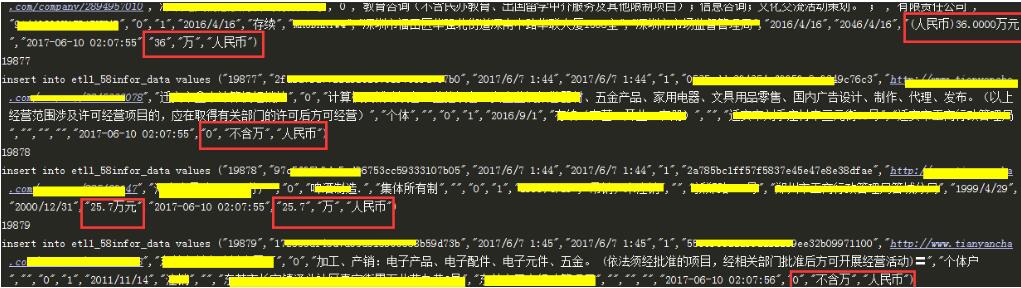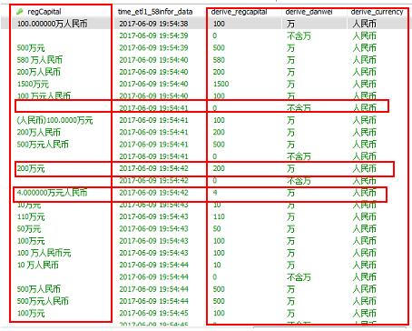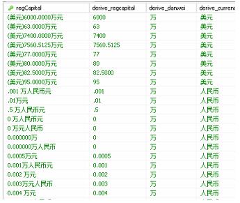 从数据库中抽异常值10个左右做测试,info是regCapital字段的值