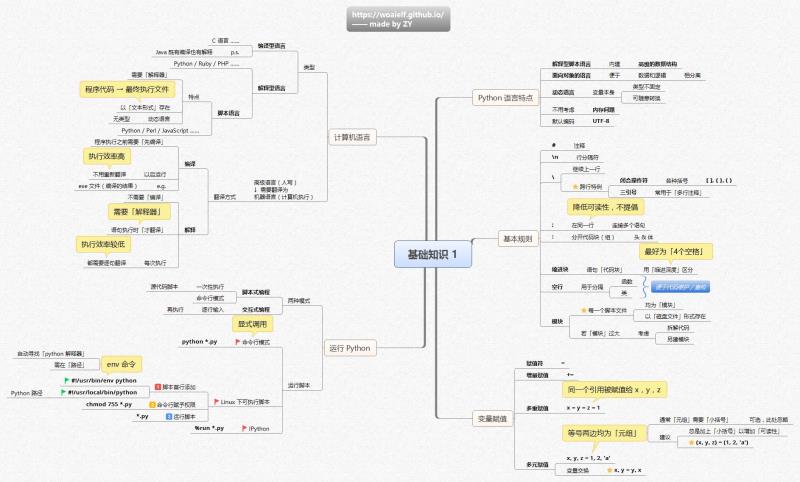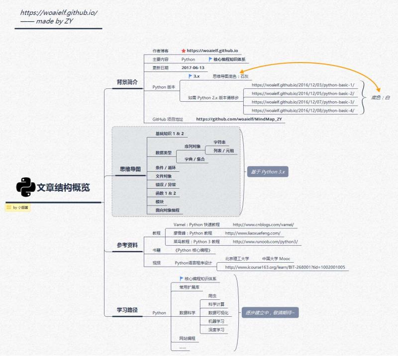 无意间碰到的一个大神整理的Python学习思维导图,感觉对初学者理清学习思路大有裨益,非常感谢他的分享。