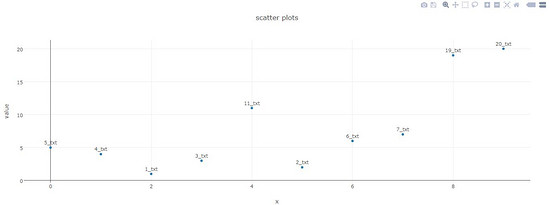 layout = Layout(title="scatter plots", xaxis={'title':'x'}, yaxis={'title':'value'})