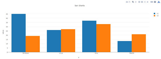 layout = Layout(title="bar charts", xaxis={'title':'x'}, yaxis={'title':'value'})