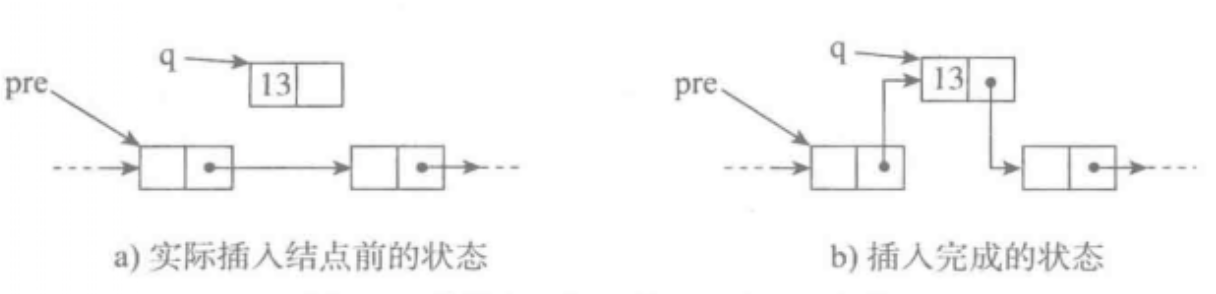 def insert(self, pos, item): """指定位置添加元素""" # 若指定位置pos为第一个元素之前,则执行头部插入 if pos <= 0: self.add(item) # 若指定位置超过链表尾部,则执行尾部插入 epf pos > (self.length()-1): self.append(item) # 找到指定位置 else: node = Node(item) count = 0 # pre用来指向指定位置pos的前一个位置pos-1,初始从头节点开始移动到指定位置 pre = self.__head while count < (pos-1): count += 1 pre = pre.next # 先将新节点node的next指向插入位置的节点 node.next = pre.next # 将插入位置的前一个节点的next指向新节点 pre.next = node