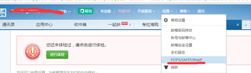 1. 登录163邮箱,点击设置-POP3/SMTP/IMAP,如下: