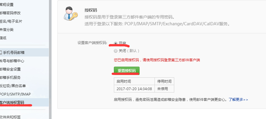 3. 点击客户端授权密码,可以重置授权码:
