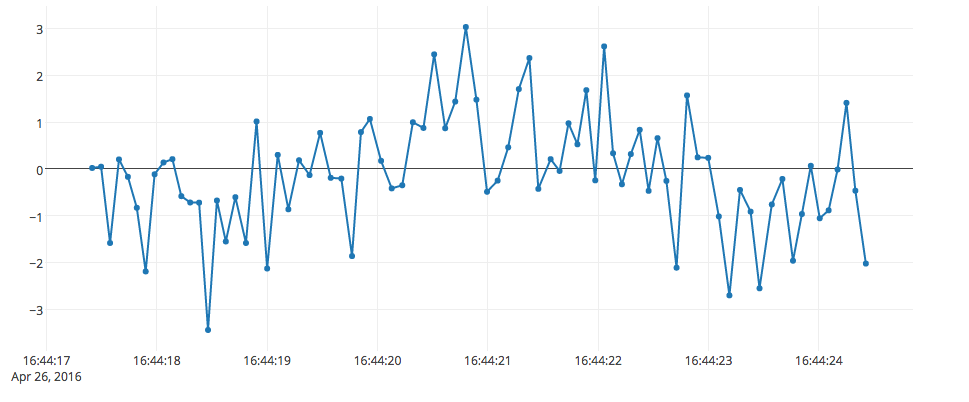 通过上述脚本,获取每秒钟网卡的3个数据,记录文本,利用 ploty 按时间绘制成直线图,实现如下: