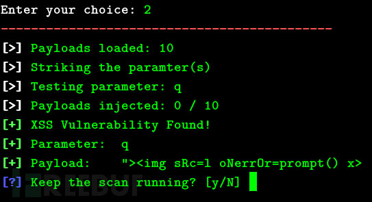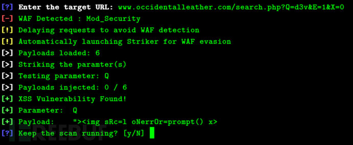 键入目标URL之后,XSStrike将检测该目标是否有WAF保护,如果不受WAF保护你将看到下面4个选项