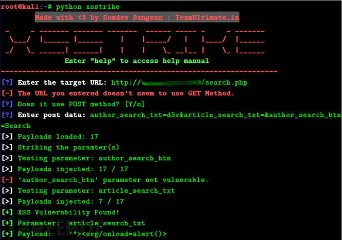 与其他使用蛮力算法的程序不同,XSStrike有着少而精的payload,其中大多数都是由作者精心构造的。