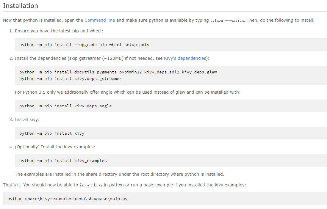 官网有详细的Kivy包的安装步骤,按照该步骤走完就安装ok。